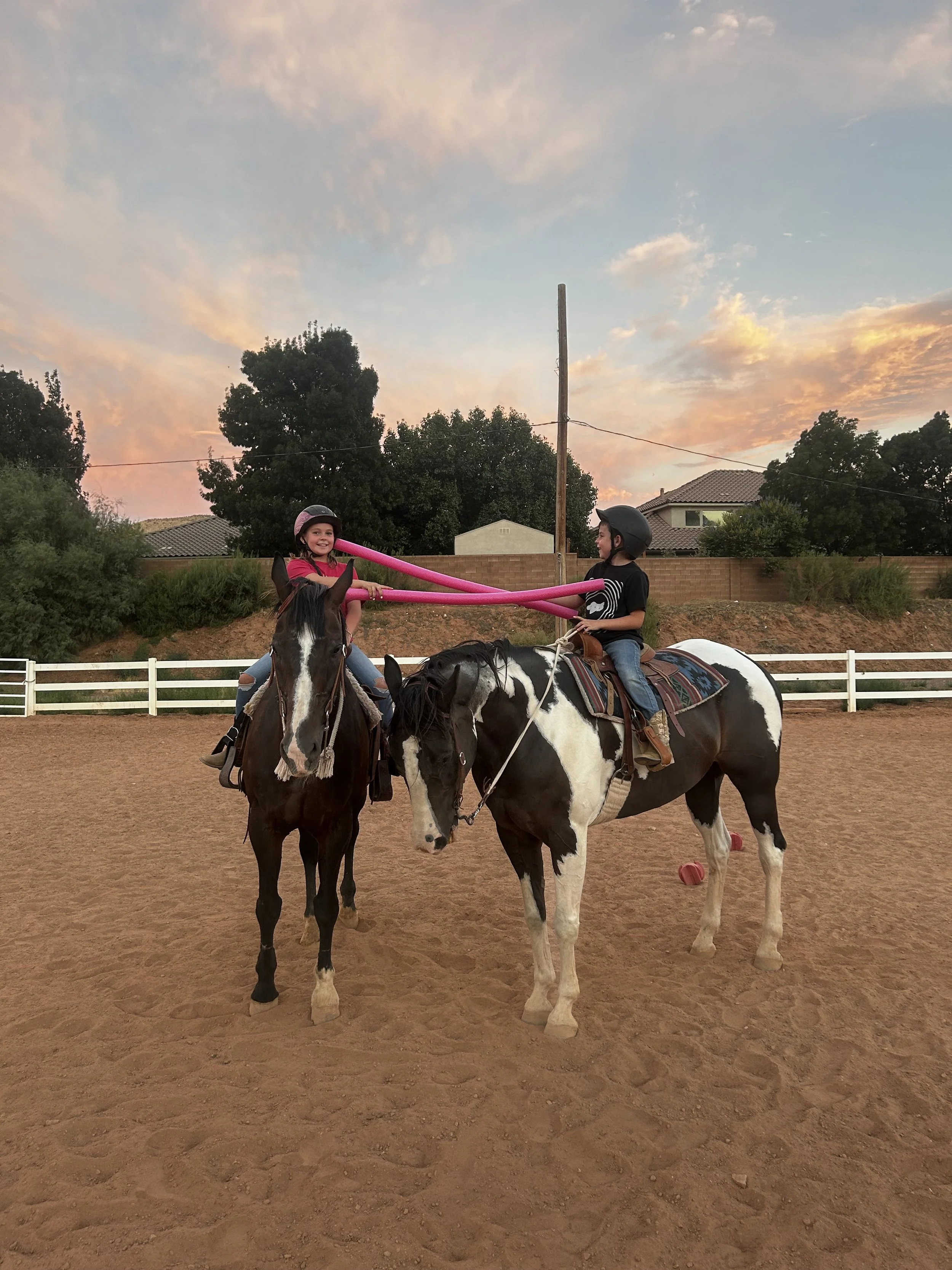 Semi Private lessons are a two on one lesson with our instructor Avory. Each lesson is roughly one hour long. These lessons are available for all skill levels from beginner to intermediate. Non-beginners will be placed in a lesson with a student that matches their skill level. Semi Private Lessons are also a great option for families with multiple kids that want to learn together. Each student will be provided their own horse and to use during the lesson that is provided by Adams Equestrian (or you can bring your own). For beginners, a typical starting lesson will involve a brief overview of horses and horse care and then progress to how to saddle the horse and the basics of riding. More advanced students will learn Western and/or English styles of riding, jumping, and other skills.
